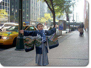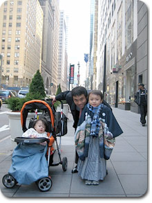 慣れない着物と長時間の撮影のためか「疲れた疲れた」を連発する息子を叱咤激励し、着物のままでマンハッタンの街を歩かせてみました。
