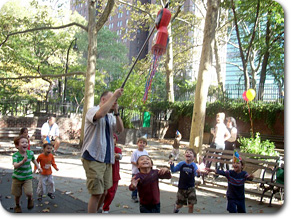 手作りのスパイダーマンを順番に叩いて下の部分が破れると、中から大量のキャンディーやチョコが出てくる、という仕掛けです。