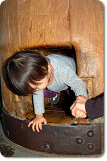 東大寺では、有名な大仏殿の柱の穴をくぐりました。 |