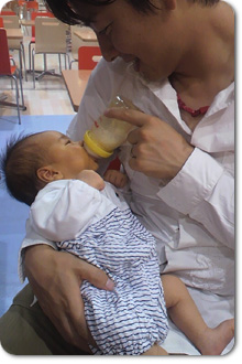 赤ちゃんが泣くと家のどこにいても飛んでいくりずむ。 胸をぽんぽんと叩いて泣き止ませてくれます。