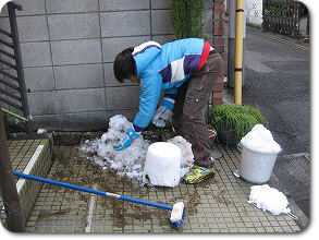 きれいな白い雪で覆えば、なかなかの雪達磨さんでしょ。