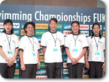 出席したのは井村コーチ、友松コーチ、ソロとデュエットに出場する立花美哉選手、デュエットの武田美保選手、チームの巽選手の5人でした。