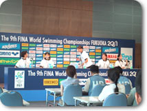 シンクロの本会場となる福岡マリンメッセで、7月14日、シンクロの記者会見が行われました。