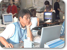 7月の16日から始まる世界水泳を前に14日、 テレビ朝日はホストブロードキャストとして全世界にこの世界水泳の映像を配信していきます。 シドニー五輪で高橋尚子選手の金メダルマラソンや柔道の田村亮子選手の金メダル実況をした森下桂吉アナウンサーも、黙々とマイペースで資料作りに励んでいます。
