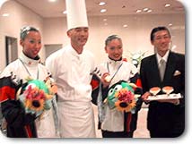 メダルを胸に宿泊先のホテルに戻れば、シェフお手製のデザートが待ち受けていました。 もうみんなで写真を撮り合って大騒ぎ。 30分でゼラチンで固めた髪を洗い、車にとびのってKBCのスタジオへ。 ニュースステーションに生出演。 久米さんから