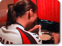 との質問に、 その様子をモニターで見ながら井村コーチは大笑い。 その笑い声がスタジオに響いて、東京まで届いてしまうのではないかといささか心配いたしました! 夜11時15分に開放された選手たち。「さあ!ラーメンに行きましょう!」井村コーチの威勢のいい声に「ハイ!」
