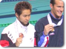 ちなみに、初めて出した日本記録は200mの短水路の記録だった。 その反省から昨年の10月、再び中学3年生のときの原点に戻って200mを強化してきた。 ですから、一般には200mが苦手と思われているようだが、それは違う。 |