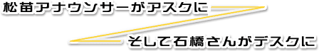 テレビ朝日アスクへの出向が3年だったので、4年ぶりのアナウンス部復帰となります。アナウンス部に戻ると言うと『又、喋るんですか?』と聞かれますが、3年前に出向が決まったときに、 現役は終わりと心に決めていましたし、部長からも専任デスクをやるように言われていますので、 やる仕事はデスクです。 デスクは縁の下の力持ちと心得ていますので、現役のアナウンサーが気持ちよく仕事ができるように 悪戦苦闘するつもりです。