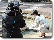 事前にカメラの動きも相談します「この噴水を・・・」 |