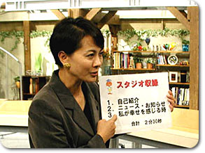 今回のアナウンサー塾事務局長の宮嶋アナは収録にあたっての諸注意を説明 |