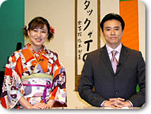 1月5日、新番組の出演者ら豪華なゲストをお迎えして「社長年頭挨拶」、「新番組出陣式」が行われました。釈由美子さん、上戸彩さん、新山千春さん、要潤さんらが駆けつけ、華やかなムードの中、松井アナが広瀬社長から表彰を受けました。