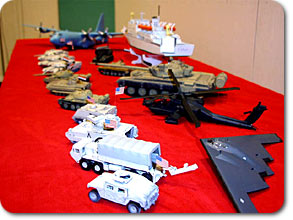 プラモデル製作の高度なテクニックで、アナウンス部のみならず社内でも有名な松井アナ。実は松井アナの精密な模型が、「ニュースステーション」や「スーパーJチャンネル」、「ワイド!スクランブル」、「スーパーモーニング」などの報道情報番組で使用されていたのです。万景峰号や、C−130輸送機、ステルス戦闘機、イラク戦争関連の戦車模型などなど。皆さんも、きっと何度も目にしているはずです。