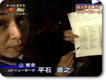 こうしてアメリカのニュース報道に感銘をうけた平石さんは、その感動を自らのリポートの中で表現したかったのか、これまでわたしたちに見せなかった新しいスタイルで登場!時は6月17日。内容は「あたかもギターを持っているかのようにパフォーマンスする‘エアロギター大会’に平石アナが出場」というものでした。