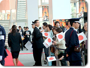 アトリウムには一般のお客さんも駆けつけて声援を送っていました |