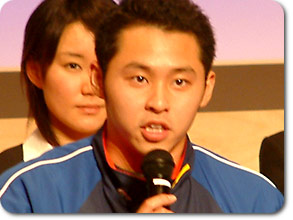 北島選手がマイクを握り、「今回も応援よろしくお願いします!」と叫ぶと会場からは日の丸が振られ、大きな拍手がおきました。続く、シンクロの鈴木恵美子さんは、「新しいチームになったので、心機一転、チーム一丸となって頑張ります」とこちらも力強いコメントをくださいました。