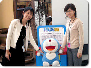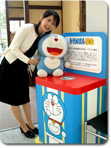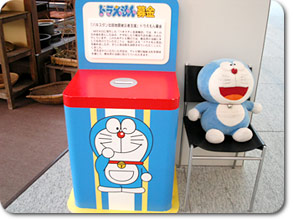 表示の電話番号は「ダイヤルQ2」番号です。 お電話いただき、お知らせを最後までお聞きいただきますと、100円が電話料金に加算されます。 また、テレビ朝日本社ビル1階のアトリウムにも、ドラえもん募金箱を設置しています。 |