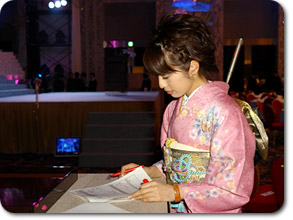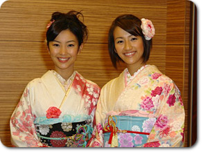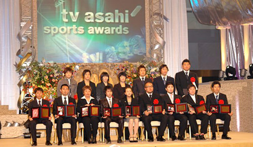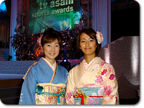 皆で着物?なぜ?・・・と思われた方もいらっしゃる事でしょう。 先日、テレビ朝日ビッグスポーツ賞の授賞式とスポーツ新年会が開かれた時にお着物を着て表彰式のお手伝いをしたんです。 |
