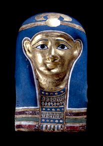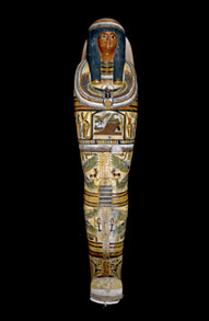 ![]() カルトナージュ棺に納められたネスペルエンネブウのミイラ 第3中間期、第22王朝(前800年頃) ![]() ミイラマスク ローマ支配時代(前30年〜) ![]() 有翼スカラベの胸飾り 末期王朝時代、第26王朝(前664〜525年) |