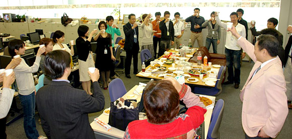 ![]() 松苗部長の音頭で「乾杯!」 |