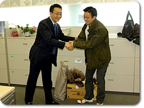 そして全アナウンス部員にとって大変なニュースが入ってきました。 それは2年7ヶ月の長きにわたってアナウンス部の庶務を担当してくださった アルバイトの黒木さんが、3月いっぱいでやめられることになったことでした。 一口に庶務といっても、仕事は多岐にわたり、まさにオールマイティー。 日々の勤務シフトのパソコン入力、出張精算、各種エクセル操作・・・ Voice5リターンズの時も、実はカゲで大変な働きをしてくださいました。 そうかと思えば、部内で絶妙のタイミングで出てくるコーヒー。 頂き物のお菓子や果物があると、丁寧に切り分けて部員に配ってくださいます。 パソコン操作に慣れない、某部員(約3名)などは、 黒木さんナシでは事務処理は何も出来ないといっても過言ではないほど。 そんな黒木さんが、新しい職場に旅立たれる事になっての送別会です。 万難を排して駆けつけた部員も多数でした。 後任の森田さん、妙なプレッシャーがかかりますが よろしくお願いいたします。 |