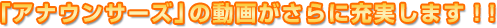 皆さん、お気付きでしょうか? テレビ朝日アナウンサーのホームページ「アナウンサーズ」に 新しく「動画コーナー」が出来たんです!! これまでの“激撮!となりのアナウンサー”に加えて、 新たに、無料の動画配信を行っていくことになりました。 テレビ朝日のアナウンサーがありとあらゆる所を突撃、リポートします! 今回の「アナウンサーズ」での動画の充実を!! ということで動画パワーアップ企画の発起人となった、 宮嶋アナウンサーから皆さんにご挨拶です。