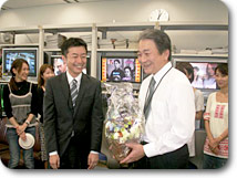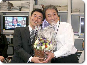 最後に同期の下平アナウンサー・高橋アナウンサーからプレゼントが渡されました。 |