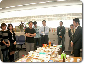 普段は別々の場所で仕事をするアナウンサー。 時間帯が違ったり、曜日が違ったりと、なかなか一堂に会することはないのですが、 忙しい合間をぬって、30人以上のアナウンサーが参加! 幹事をされた西脇さんの同期の下平アナウンサー・高橋アナウンサーの予想をはるかに上回る人数で、用意された分では足りない!ということで、急遽ピザを頼んだほど。 さすが、西脇さんのご人徳ですね! アナウンス部室が、明るい笑い声に包まれました☆ まずは、吉澤アナウンサーの挨拶・乾杯の音頭。 |