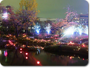 ![]() 趣きある昼の毛利庭園と、 ![]() 幻想的な夜の毛利庭園です! |