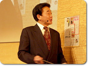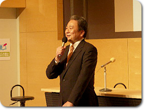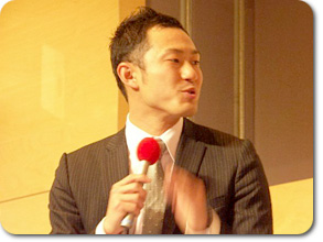 さすがの名人芸!! 会場の空気も先ほどとは一変し、佐々木アナの話術に会場がひきこまれていきます。 |