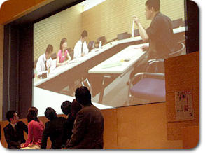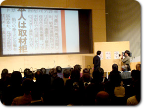 ![]() 真剣そのもの ![]() 原稿に読み違いがないかを会場全体でチェック |