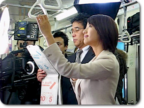 前田さんは、電車の中での撮影だったそうですね! 前田アナ> そうなんです!春先の通勤電車に、フレッシュな気持ちで乗っているっていうイメージなの。 CMは、一発本番のテレビと違って、十数秒にかけるこだわりがとにかくすごいの! 肩の入れかたから首の角度まで、細かい絵作りに本当に驚きました。 台詞を何十回も繰り返して、夢に出てくるくらいだったよ(笑)。 何度も何度も撮ったのでこわばっているかもしれないけど、是非見てみてください♪ |