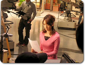 地デジ推進大使としての出演、いかがでした〜? 上宮アナ> 大変だった! CMは秒単位の世界だから、本当に緻密な撮影だったの。 なんと、瞬きの数まで考えるという精密さ! 監督のこだわりが細かいところにまでつまっているんでしょうね…! 上宮アナ> 私は手を上げ下げするアクションがあったんだけど、角度や向きが微妙に合わなくて、 何度も何度も上げ下げしたから自分の手じゃないみたいになって(笑)。 あと、「地デジは5チャン!」という台詞があって、 その中の「5チャン!」だけ強調するっていうのが難しかったなぁ。 自然体でありながら、細部に気を配ることは本当に大変。 CMを見る目が変わりました(汗)。 |