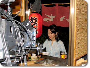 大木さんはなんだかスゴイところで撮影したみたいですねぇー! 大木アナ> そう!なんとおでん屋さんでの撮影だったの! おでん屋さん!!他の方のように、キャラクター設定もあったんですかっ? 大木アナ> そうなの、監督さんが細かく設定してくださったの! 私の台詞は「デジタル5チャンネルです!」。 会社帰りに、開放感に満ち溢れて、幼馴染の「あきちゃん」と一緒に屋台で一杯。 そのときに屋台のおじさんに「そいえば、アンタ何チャンネルだっけ?」って聞かれて、 その返事の、「デジタル5チャンネルです!」なのね! そこにうまく気持ちを持っていけるように、 カメラが回っていないときも屋台のおじさんと「あきちゃん」を演じる役者さんたちと三人で、 この設定で喋るっていう徹底ぶりだったんだけど、 すっごく不自然な「デジタル5チャンネルです!」になってしまって、情けなかった…。 たった一言でも、自然に表現するのは難しかったよ。 あ、ちなみに、ちょうど撮影のときお腹が空いていたので、おでんは沢山いただきました(笑)。 |