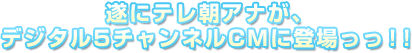 いかがでしたか?? このCMの放送はこの2月からになります!楽しみにしていてください! そして、テレビ朝日はデジタル5チャンネル!! 皆さん、覚えてくださいね♪ |