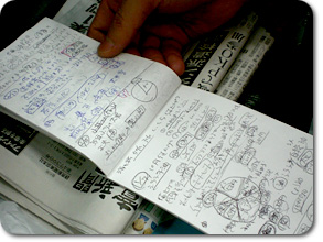 ![]() おもむろに鞄を開く小久保さん ![]() 中にはぎっしり詰まっていて、一つのメモ帳を発見!! |