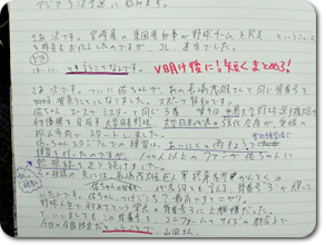 「でも、多くの先輩がおっしゃるように、その場の空気感からしか分からないこともあるので、 なるべく国会など現場に足を運ぶようにしています! ・・・とにかくいまは学ぶことがたくさんありすぎて、楽しいっ☆ 大学時代よりも、勉強してるかも♪」 とのことでした。 ・・・・・・・・・・・・・・・・・・・・・・・・・・・・・・・・・・・・・・・・・・・・・・・・・・・・・・・・・・・・・・・・・・・・・・・・・・・・・・・・・・・・・・・・・・・・・ ・・・私・野上は、恐らく、いえ、確実に、大学時代より「は」今のほうが勉強している気がします。(笑) ・・・・・・・・・・・・・・・・・・・・・・・・・・・・・・・・・・・・・・・・・・・・・・・・・・・・・・・・・・・・・・・・・・・・・・・・・・・・・・・・・・・・・・・・・・・・・ 僕は、スポーツコーナーで使えそうな情報を切り貼りして「やじうまプラスノート」を作っています。 |