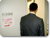 ドラマの撮影でしょうか・・・。しかし周りは会議室の風景で、撮影の類ではなさそう。 気になって、気になって、ちらっと様子を探ってみると、 ドアには謎の紙!! |