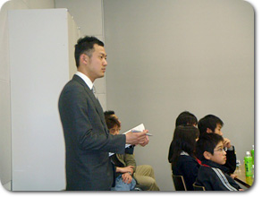 Q.「モニターを始めてテレビの見方は変わりましたか?」 ・セットやBGMについても気にするようになった ・番組全体を見るようになった ・出演者の言動までじっくりと見るようになった 皆さんに共通していたのは番組を細部にわたるところまで見るようになったというご意見。 ただ見るのではなく、何故よくて、何故だめなのかを考えるようになったそうです。 Q.「自分の意見が番組に反映されることについてどう感じますか?」 ・一生懸命発表した意見が、番組に活かされているのを家でテレビで見ると嬉しい!! ・番組を見て自分の意見が反映されると、家族内での話題にもなって盛り上がる。 ・こんなにも自分たちの意見が番組に反映されるとは思っていなかった。 ・10代の私たちの意見を取り入れてもらえるので、幅広い世代が楽しめる番組になると思う。 この会議が家族の会話の一つになり、またみんなでテレビを楽しむ話題にもなるのですね。 そして、楽しめる番組につながっていく!! まさに!これぞ!好循環!! 最後に、折角ですので参加した皆さんに私たちの評判も調査してみました。 Q.「この中で、僕たちのことを知っている人はいますか??」 ・・・ 野上:「では、大西アナを知っている人は挙手をお願いします!」 全員:「シーン・・・。」 大西:「・・・えぇ〜。はい!!では、野上アナを知っている人は挙手をお願いします!」 全員:「シーン」 野上:「シーン」 ・・・1秒半の沈黙後。 なんと!!手を上げる少年が一人いるではありませんか!!! 中学校1年生の宮里峻君(13歳) |