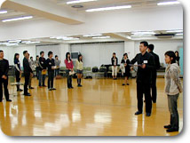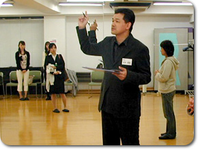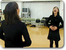 ![]() アナウンサーのバイブル、「外郎売」のレッスン中 |