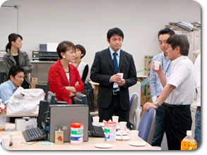 アナウンス部の中で私たち若手アナウンサーの旗頭、 いい兄貴分だった櫻井アナウンサーがこの度、スポーツ局へ異動することになりました。 櫻井アナは新たな可能性を探り、今度はカメラの前に立つのではなく、制作者として舞台裏からスポーツの魅力を伝えていく道を自ら選びました。 先輩の新たな旅立ち・・・これは黙ってはいられない!! そこで、先日アナウンス部で櫻井アナの歓送会が開かれました! しかも、アナウンス部史上初?昼の部と夜の部の二部構成です!! その模様を皆さんにもご紹介します。 まずは昼の部! 普段、アナウンス部の面々が一度に集うということはめったにないのですが、 この日はたくさんの人が集まりました! |