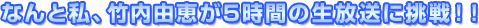 10月15日(水)19:00から、 FIFAワールドカップ2010アジア地区最終予選のウズベキスタン戦が行われます。 テレビ朝日では19時からの放送となりますが、 なんとワンセグ(携帯電話のテレビ)では、試合開始までの約5時間、13時59分から、 私、竹内由恵が大胆にも1人でスタジオから生放送に挑戦することになりました!! |