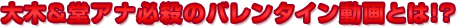 皆さん!もうご覧になりましたか!? なんと大木アナと堂アナが、 本格演技(!?)に挑戦しているのです!! この企画は「バレンタインに本を贈ろう」という 朝日新聞とテレビ朝日のコラボレーション企画で、 2月4日から13日まで放送されています。 この期間限定の貴重な動画を、特別に、お見せしちゃいます! こちらをCHECK☆ |