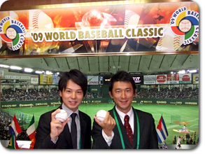 さあいよいよ3月5日から'09 World Baseball Classic が開幕します! 連日、新聞でもテレビでもその話題で持ちきりです! 侍ジャパンのニュースは、なんだか気になって目がとまってしまうのではないでしょうか。 日本における野球人気の根強さを改めて実感しています。 まずは東京ラウンドが3月5日〜9日まであります。 日本はA組で、中国、チャイニーズタイペイ(台湾)、韓国と対戦します。 トーナメント表など詳しい情報はこちらをご覧ください。 テレビ朝日系列で放送しますよ♪日程は以下のとおりです。 3月5日 夜6時25分〜 アサヒビールプレゼンツ '09 World Baseball Classic 東京ラウンド 日本 対 中国 3月7日 夜6時30分〜 アサヒビールプレゼンツ '09 World Baseball Classic 東京ラウンド 日本戦(内容は変更になる場合があります) 3月8日 夜6時〜(日本戦がない場合は野球中継はありません) 3月9日 夜6時19分〜(日本戦がない場合は野球中継はありません) 実況は中山アナウンサーと清水アナウンサーが担当しています。 先ほどお二人のシフトを確認してみたところ・・・、 連日、WBCの取材、打ち合わせ、インタビューでぎっしり埋まっていました。 そんなWBCにどっぷりと漬かっているお二人にコメントをもらいました! |