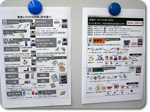 また、ゴミの分別表もゴミ箱の近くに表示されています。 |