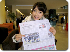 ![]() 試合翌日の蔚山の地元新聞。 鹿島が圧勝したのに新聞は一面蔚山現代の写真! ![]() 水原の広場で民族劇(?)の練習をしていた方々と一緒に |