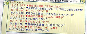 社員食堂で「6月 運命の3連戦フェア」なるものが行われました☆ |