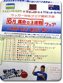 2010年南アフリカW杯出場の切符を手にしてから初めての試合、 1対1の引き分けと少し悔しさの残る結果となってしまったカタール戦。 次は17日(水)のオーストラリア戦です!! テレビ朝日も気合が入っていますよーー!! その“気合度”が分かる1枚のポスター。 |