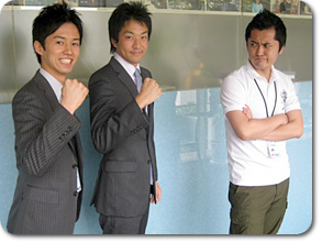 ![]() 甲子園で新人の男性二人がデビューします! 右から板倉、三上、そして3年目の先輩・大西アナ |