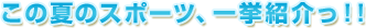 真っ青な空、ぎらぎら照りつける太陽…そんな夏に似合うのは、やっぱりスポーツ! 今年もスポーツの夏がやってきました〜っ☆ すでにテレビ朝日ではスポーツ中継が盛り上がっています!アナウンス部も大忙しです。 6月の全米オープンゴルフに続き、 今月10日(金)〜13日(月)には全米女子オープンゴルフがありました。 そして7月の中旬からも、まだまだ楽しみなスポーツイベントがあります♪ |