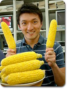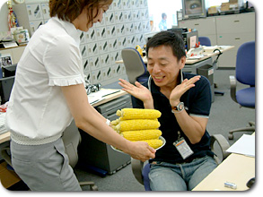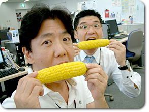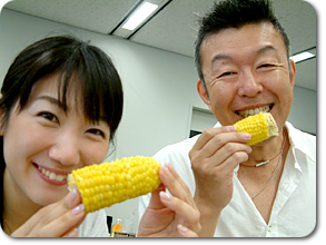 アナウンス部にいて、夏になると待ち遠しいものがあります。 一年に一度だけ夏の盛りに届くもの。 今年もきました! ああ、この瞬間に、アナウンス部にいてよかった、と真剣に思うのです。 出張に行っていたら、ありつけないのですから…ふふふ… 小松靖アナのお母様が北海道から送ってくださる「とうもろこし」 |